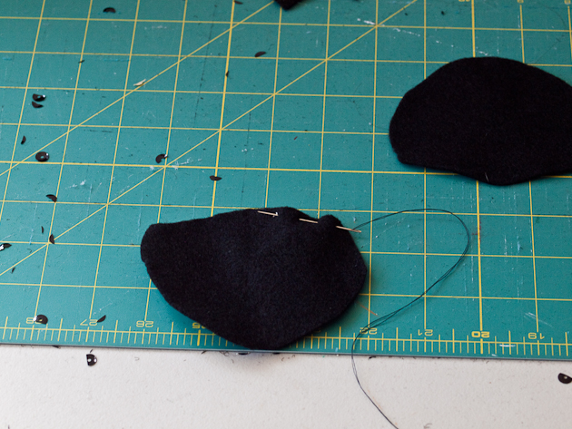 Cut two 4" diameter circles from black felt.